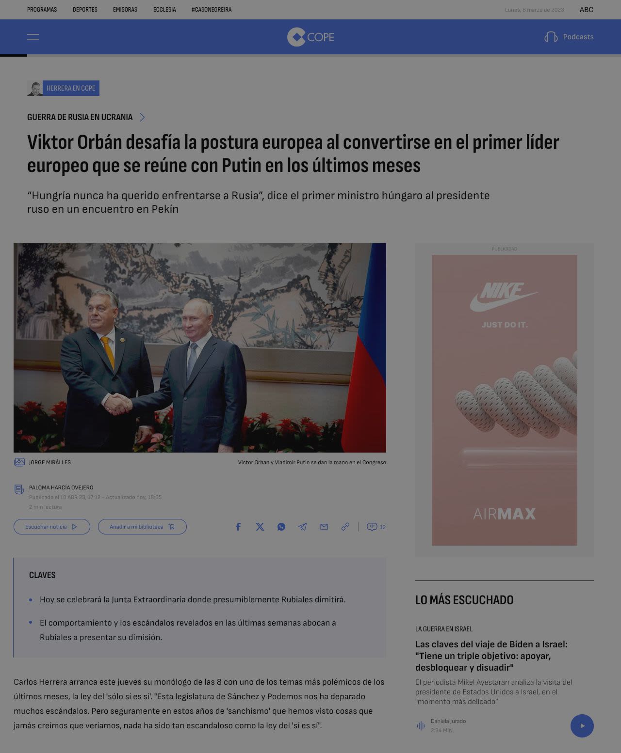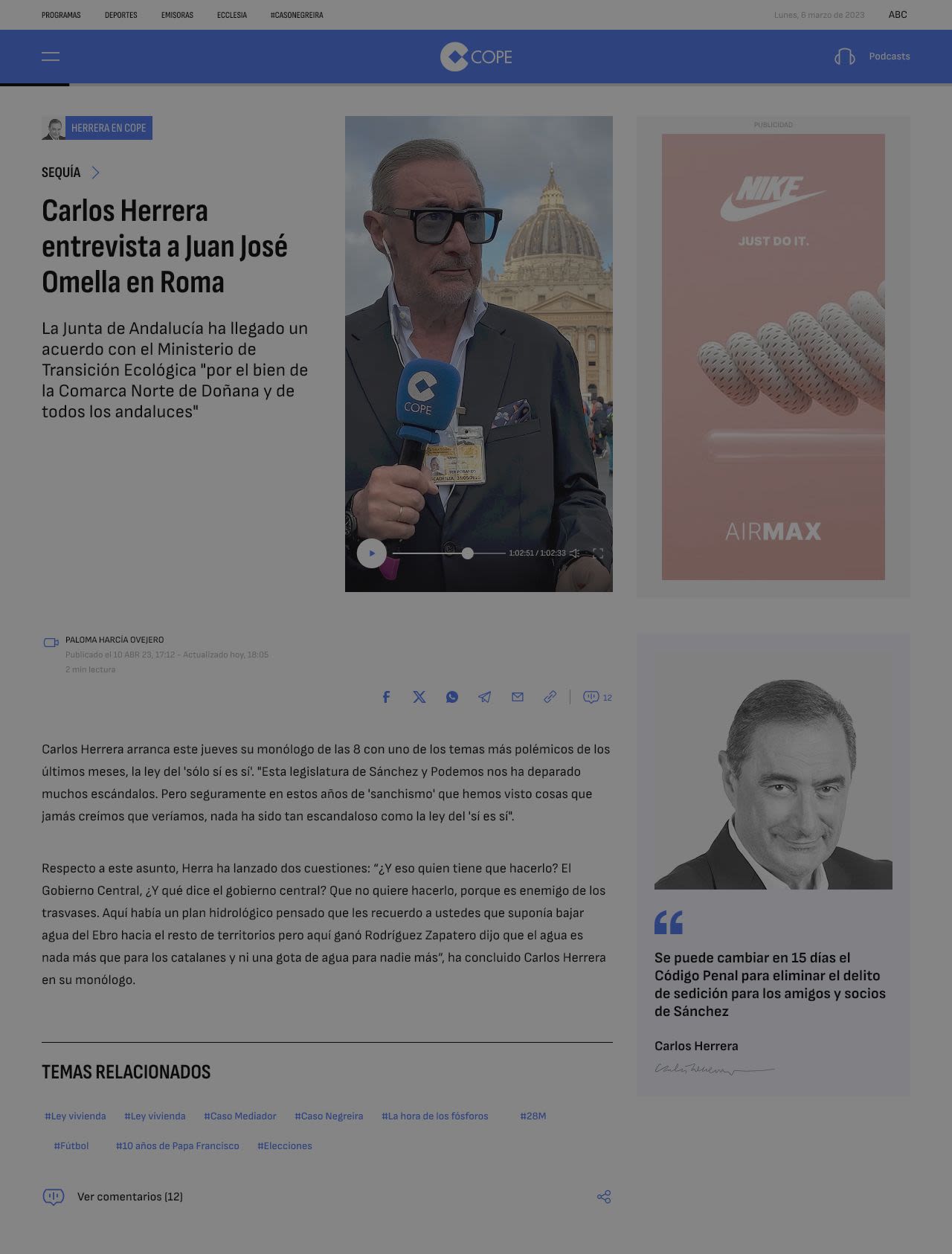 Hay portadillas que son mantenidas y actualizadas con listados automáticos de noticias pertenecientes a una categoría concreta.
